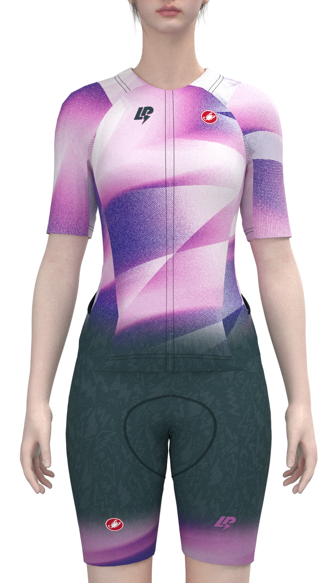 This isn't just an upgrade. This model revolutionizes our iconic women's Free Sanremo Suit. When we launched the first short-sleeve triathlon suit with a full zip in 2014, Castelli was a true pioneer in the world of sport, changing how triathletes dress and compete. Today, for races, almost nobody wears anything other than a short-sleeve suit. Over the past ten years, our iconic Sanremo model has undergone numerous modifications in terms of cut, performance, and speed. We dare to believe that the latest version will once again become a benchmark. In a sport where aerodynamics are key and every detail must be optimized, you certainly don't want to leave anything to chance on race day. The magic of the Free Sanremo 3 is revealed with the complete redesign of the sleeve and shoulder area. Hours of CFD analysis and wind tunnel testing have revealed unprecedented improvements in aerodynamics, thanks in particular to the specially designed ribbed fabric on the sleeves and shoulders. The Forza2 stretch fabric features a sophisticated embossed structure that positively impacts airflow around the legs. But we don't stop at aerodynamics. The new suit also supports you on the hottest competition days. Lightweight, breathable fabrics on the body and the integrated ice pocket in the neck will prove very useful when you try to cross the finish line on Ali'I Drive in October, or for any other race in the heat. The name Sanremo means that the suit opens completely at the front for better ventilation during the race. The two rear pockets can hold a large amount of snacks. Wearing the Free Sanremo suit is like riding the wave of success.